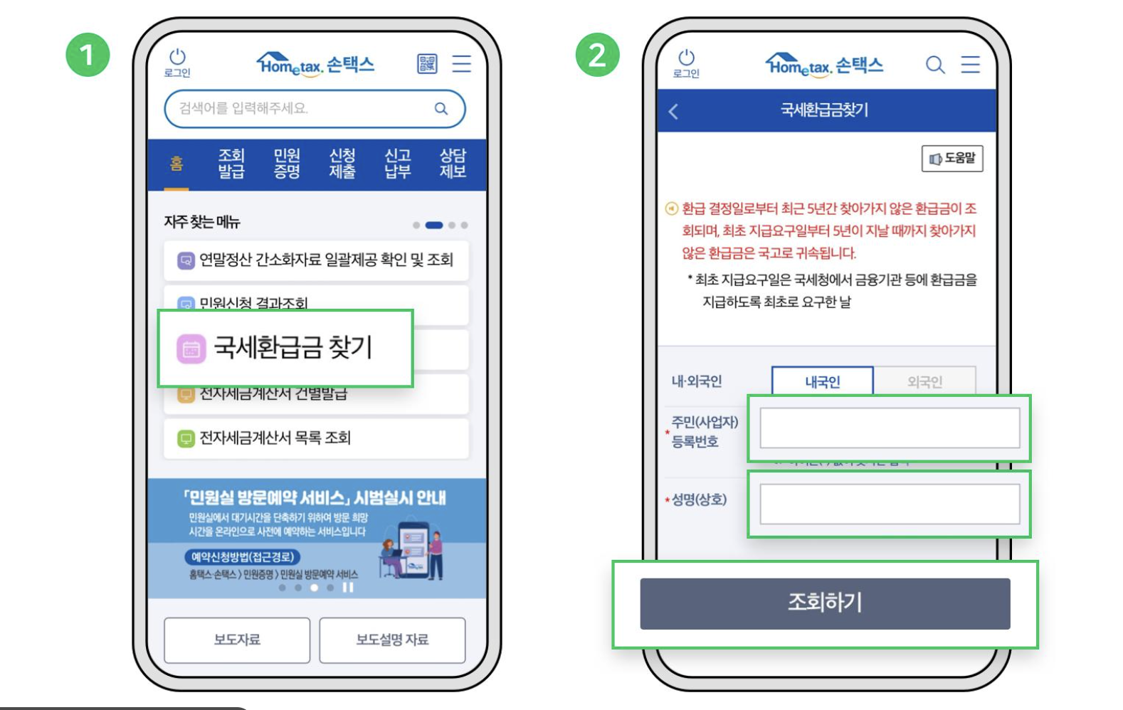 앱 설치 후 로그인하고 조회/발급 → 국세환급금 조회 메뉴를 선택하면 현재 환급 가능 금액, 지급 상태, 미수령 환급금 여부를 바로 볼 수 있습니다. 최근 5년 이내 환급금만 조회되는 점도 함께 안내됩니다.
